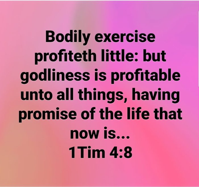 For physical training is of some value, but Godliness has value for all things, holding promise for both the present life and the life to come~ 1 Timothy 4:8,NIV.
