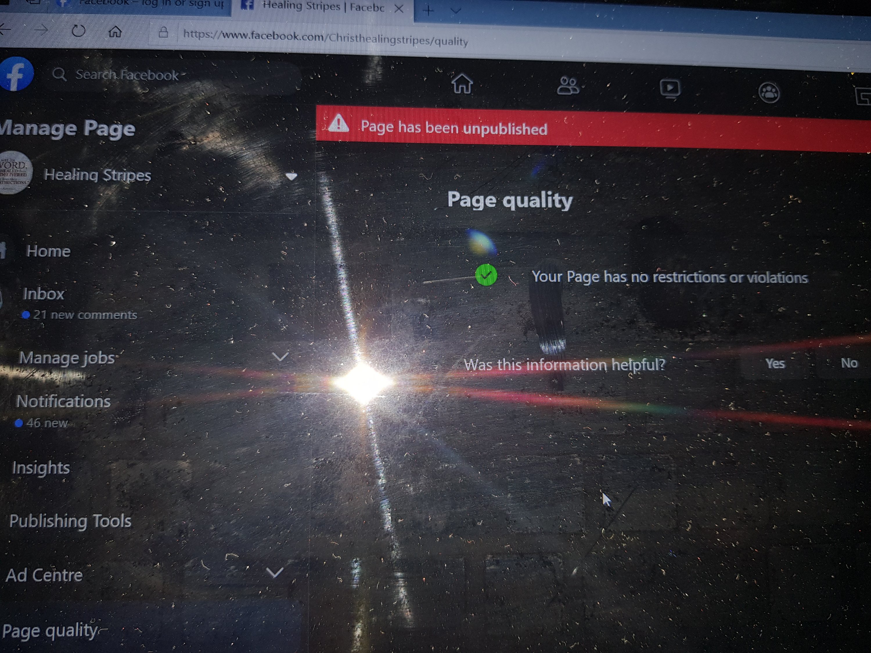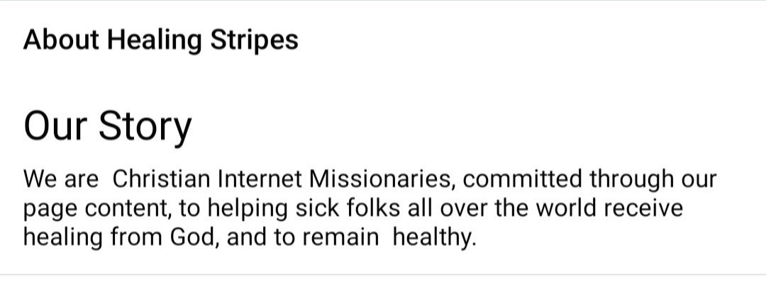 The question is, why has Facebook not republished the page HEALING STRIPES when we have not violated their community standards? Is this not religious discrimination/ targeting?