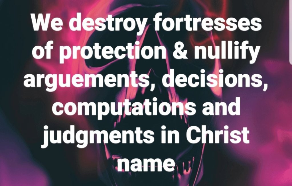We stop and bring to nought, evil thoughts and purposes, satanic devices and wicked plans, evil schemes and mental perceptions.