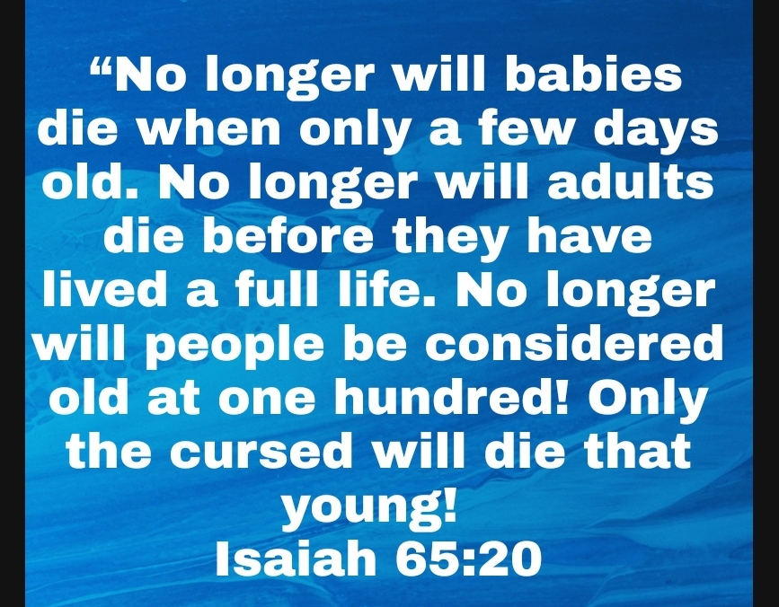 I have a covenant of life . Eternal life is at work in me, and nothing in me or from me can’t die before they are 100 years old. Hallelujah.