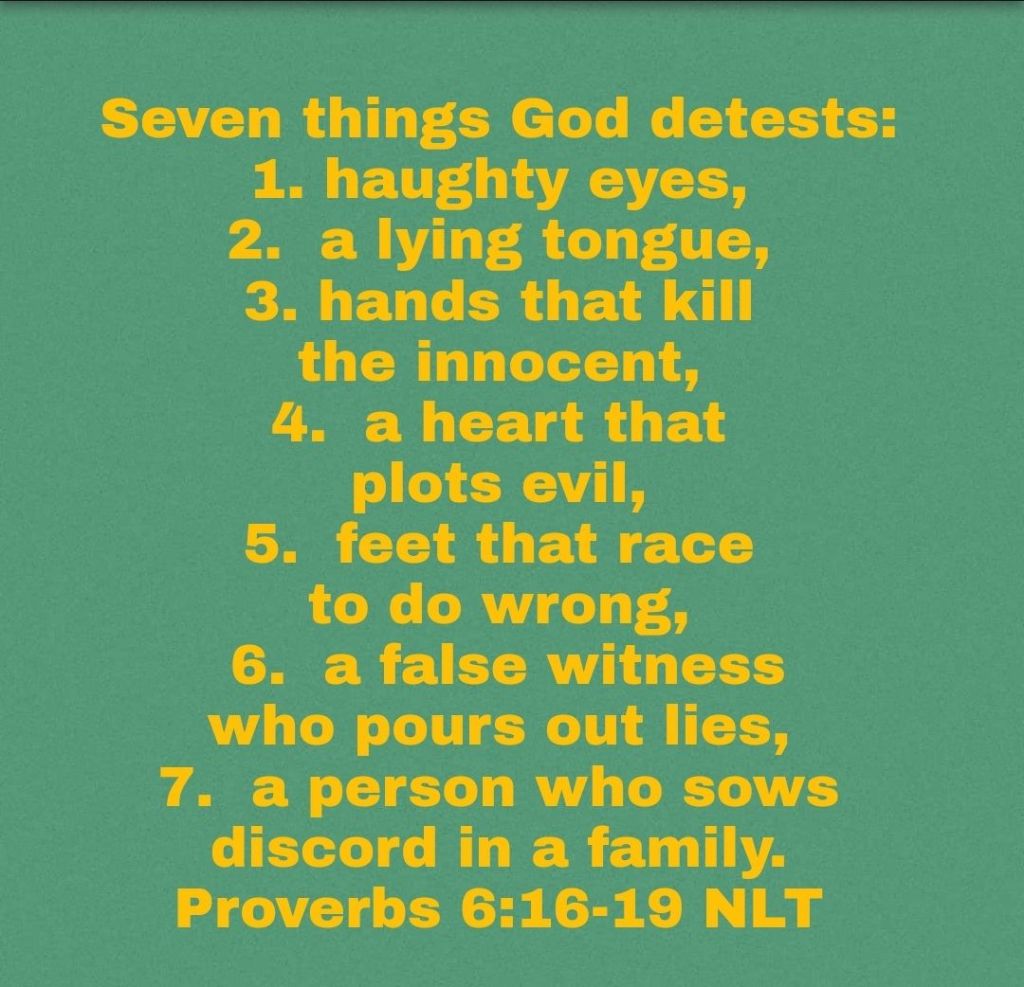 Our picture post outlines the following 7 detestable behaviors as what God hates.