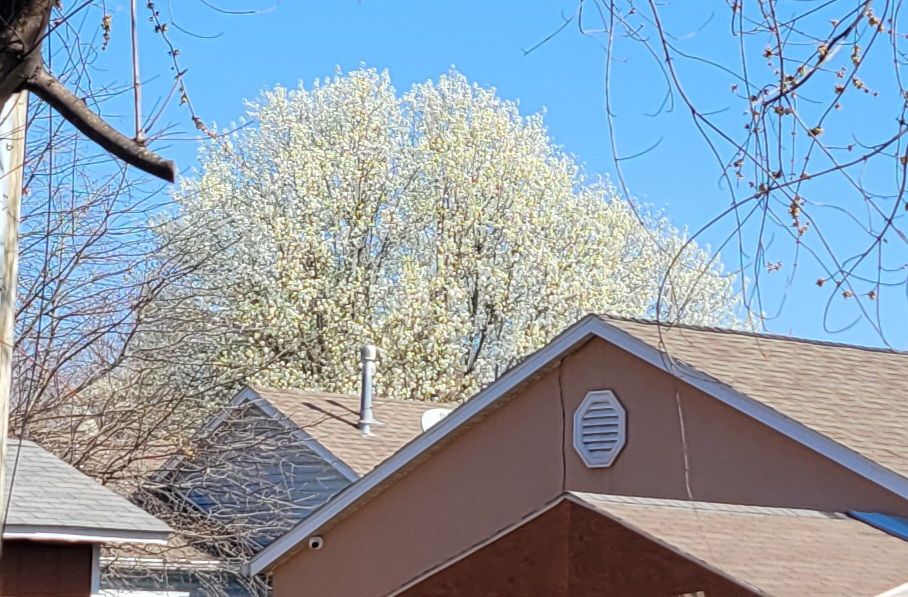 As I looked through our back window, I saw this beautiful tree heralding Spring! (Pic)