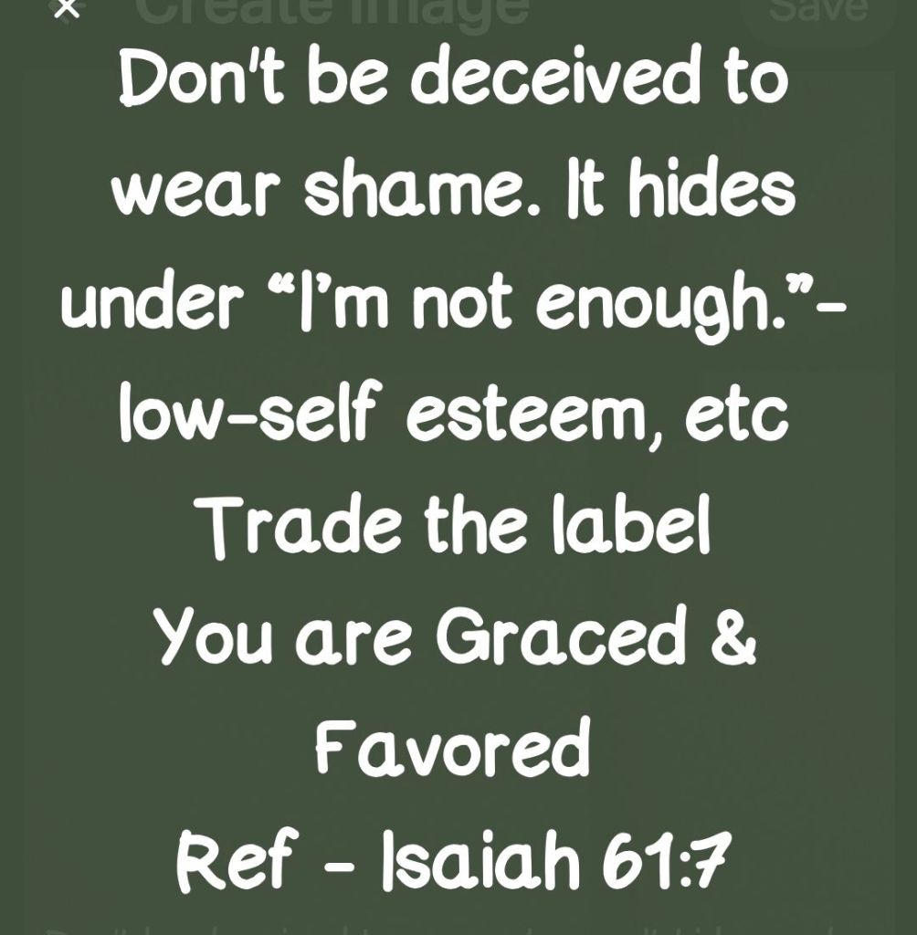Don’t be deceived to wear shame. It hides under “I’m not enough.”- low-self esteem, etc